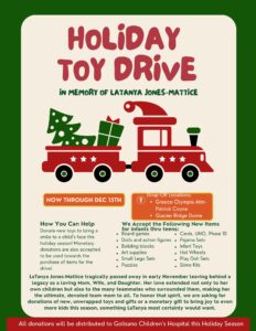 If you would like to make a monetary donation towards the Toy Drive, we will purchase the toys and donate them with others collected in LaTanya's memory